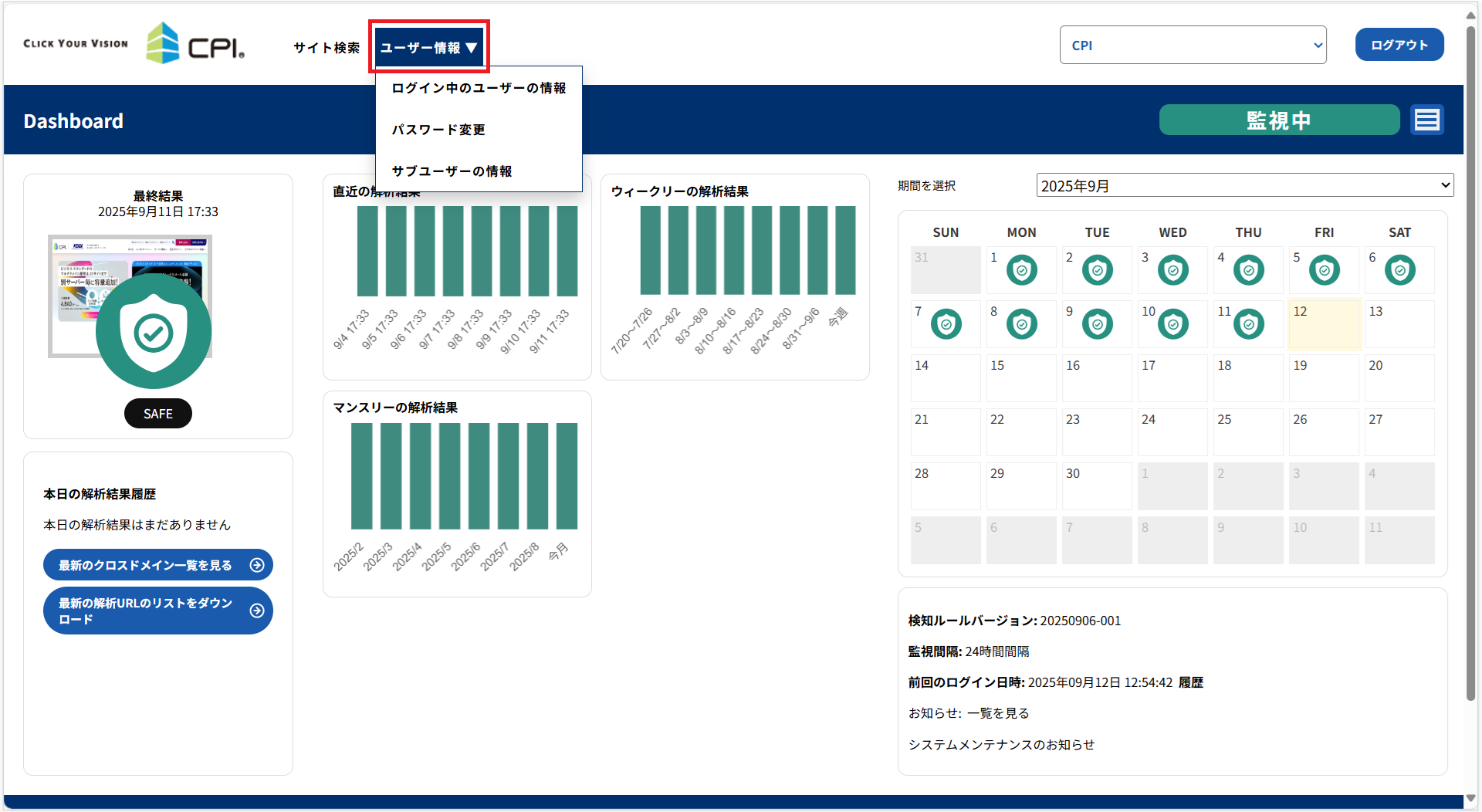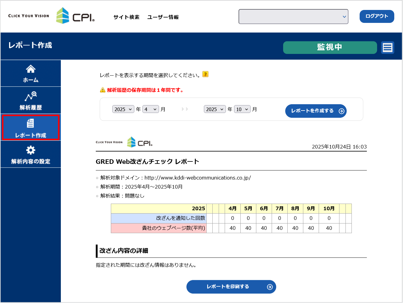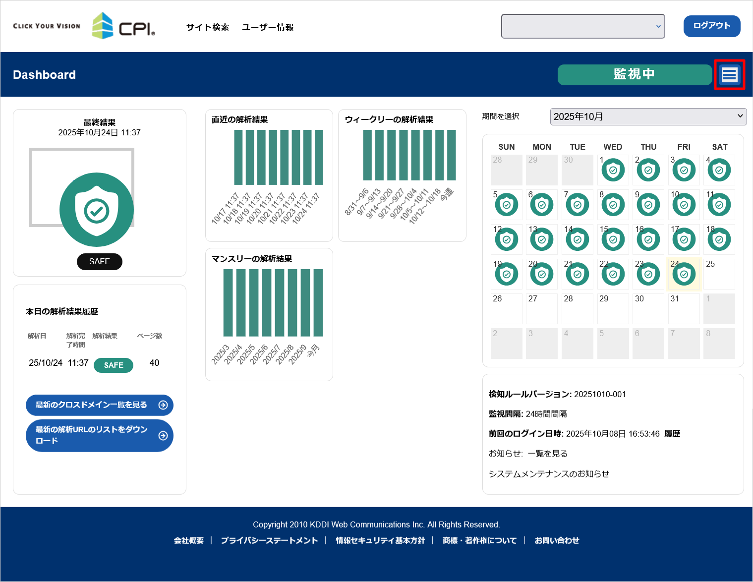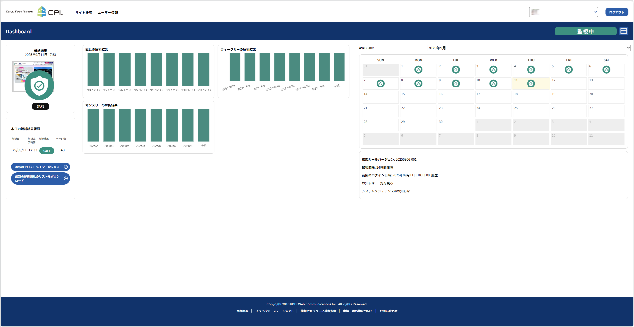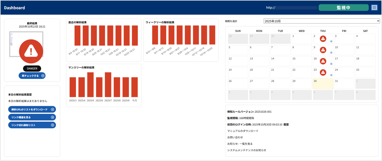 Web 改ざん検知の管理画面 URL:https://www.gred.jp/saas/cpi