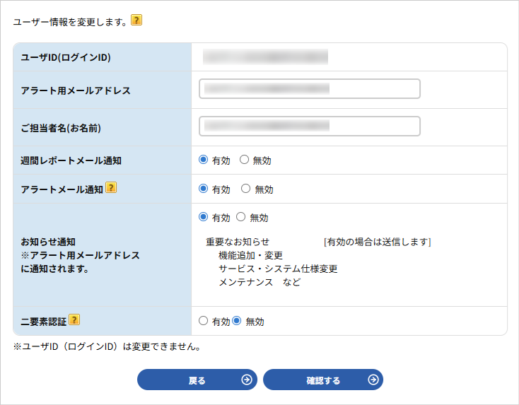 ユーザー ID(ログイン ID)は変更できません。