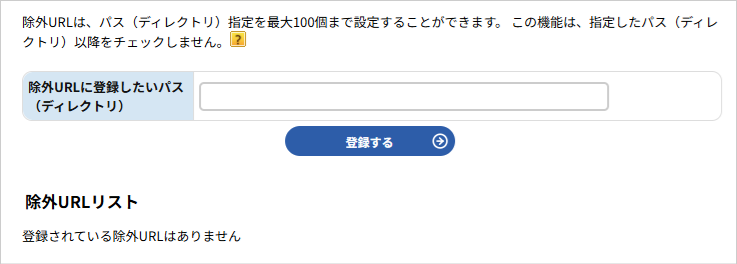 除外 URL は、パス(ディレクトリ)指定を最大 100 個まで設定することができます。