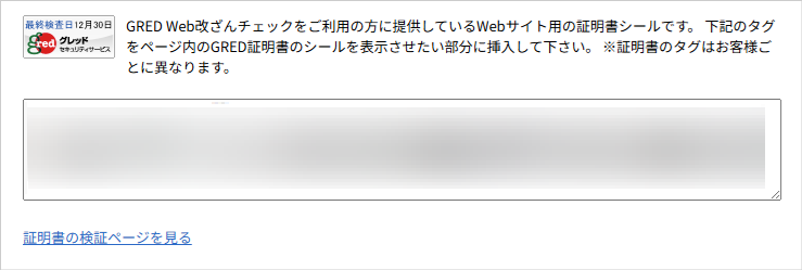 表示されているタグをページ内の gred シールを表示させたい部分に挿入してください。
