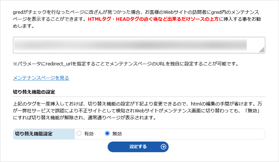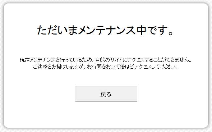 gred がチェックをおこなったページに改ざんが見つかった場合、お客様のウェブサイトの訪問者に gred 内のメンテナンスページを表示することができます。